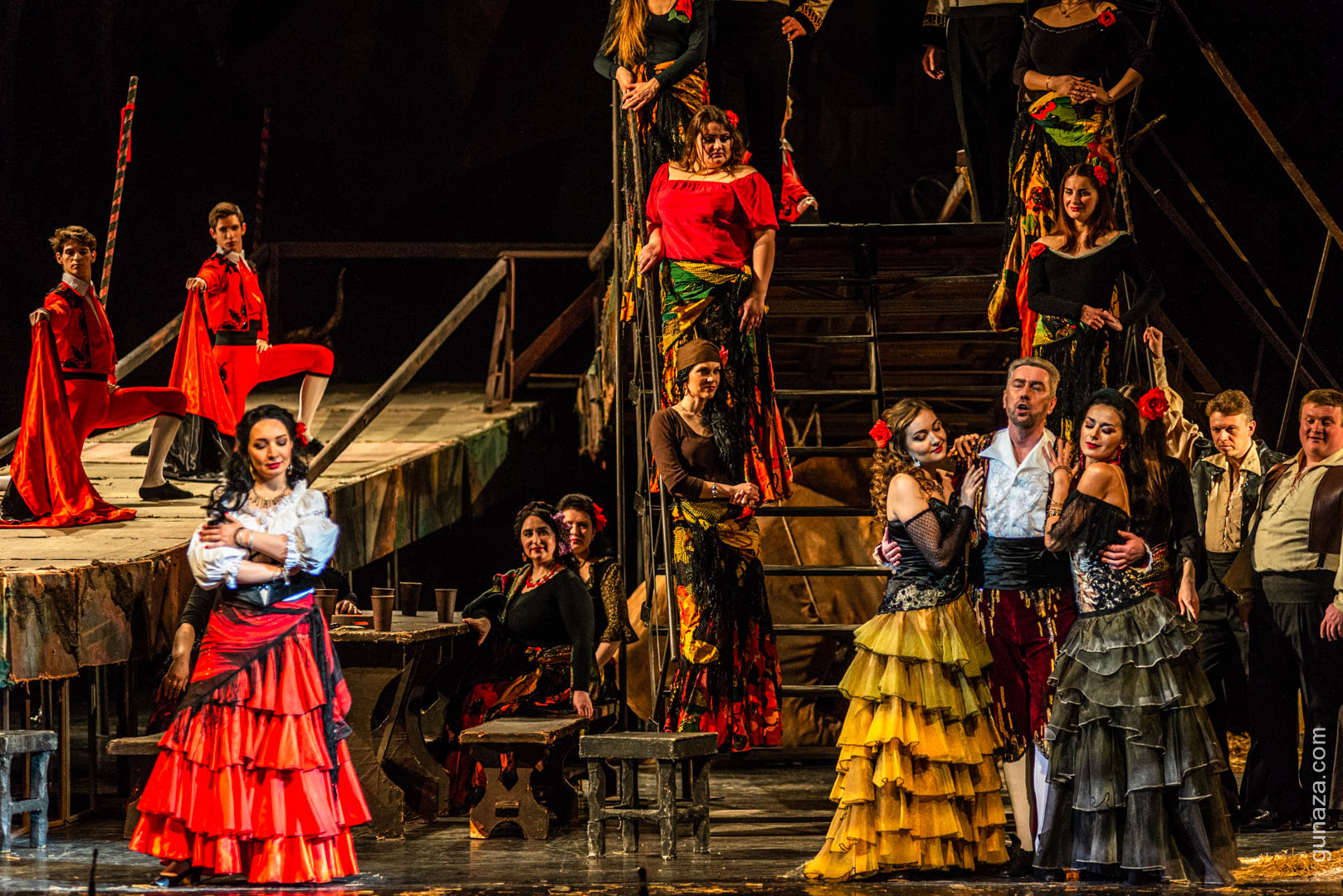 It tells the story of the downfall of Don José, a naïve soldier who is seduced by Carmen, a provocative and free-spirited femme fatale. José abandons his childhood sweetheart Michaela and deserts the army. Despite this he finally loses Carmen’s love to the glamorous toreador Escamillo. In a fit of jealous rage José kills Carmen, bringing the opera to a dramatic and tragic end.